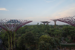 Gardens by the Bay is interesting. It is a huge park with two main attractions and many spaces spread out (Imagine a Singapore Central Park). You could seriously spend several days to see all of it. We went to the Flower Dome first. We had read mixed reviews. It has about 30,000 plants with a seasonal display in the center. The current display is roses. Not my favorite, but not horrible. It was cute with little castle ruin walls and towers as backdrops. Around that are paths full of succulents, baobabs, and gardens from different areas of the world (Australia, South Africa, California Mediterranean and South America). It was interesting and pretty, but didn't live up to my expectations.