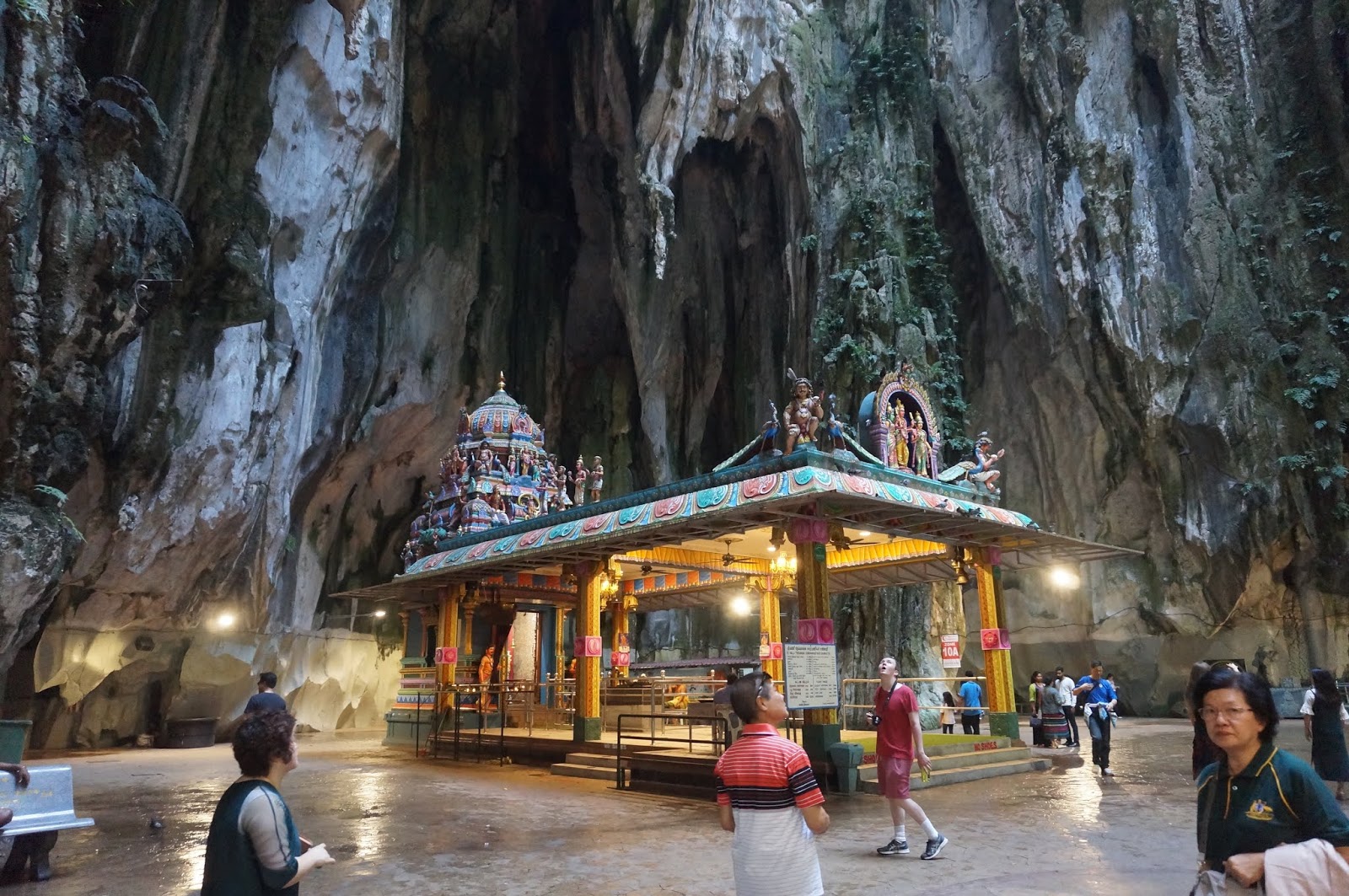 Being as it's a religious temple, women have to have shoulders and knees covered. Men, however can wear anything they want. I was wearing a very modest dress that goes down to mid-knee. That wasn't good enough. A guard lounging at the bottom of the stairs looked at me and officiously pointed to the booth renting scarves. So I had to pay 5 ringgits (about $2) to rent a scarf. I was upset, but figured I'm a guest in their country and I need to respect their beliefs. So the woman tied the scarf around my waist. I said something about women needing to cover their knees, but men didn't have to. She just replied, Men no have to, just ladies! with a smile. With a sigh I smiled back and hiked up the scarf to climb the steps. The scarf fell a few inches below my knees. So all of that for a few inches. We saw the shrines and I returned the scarf (receiving a few ringgits back for the return).